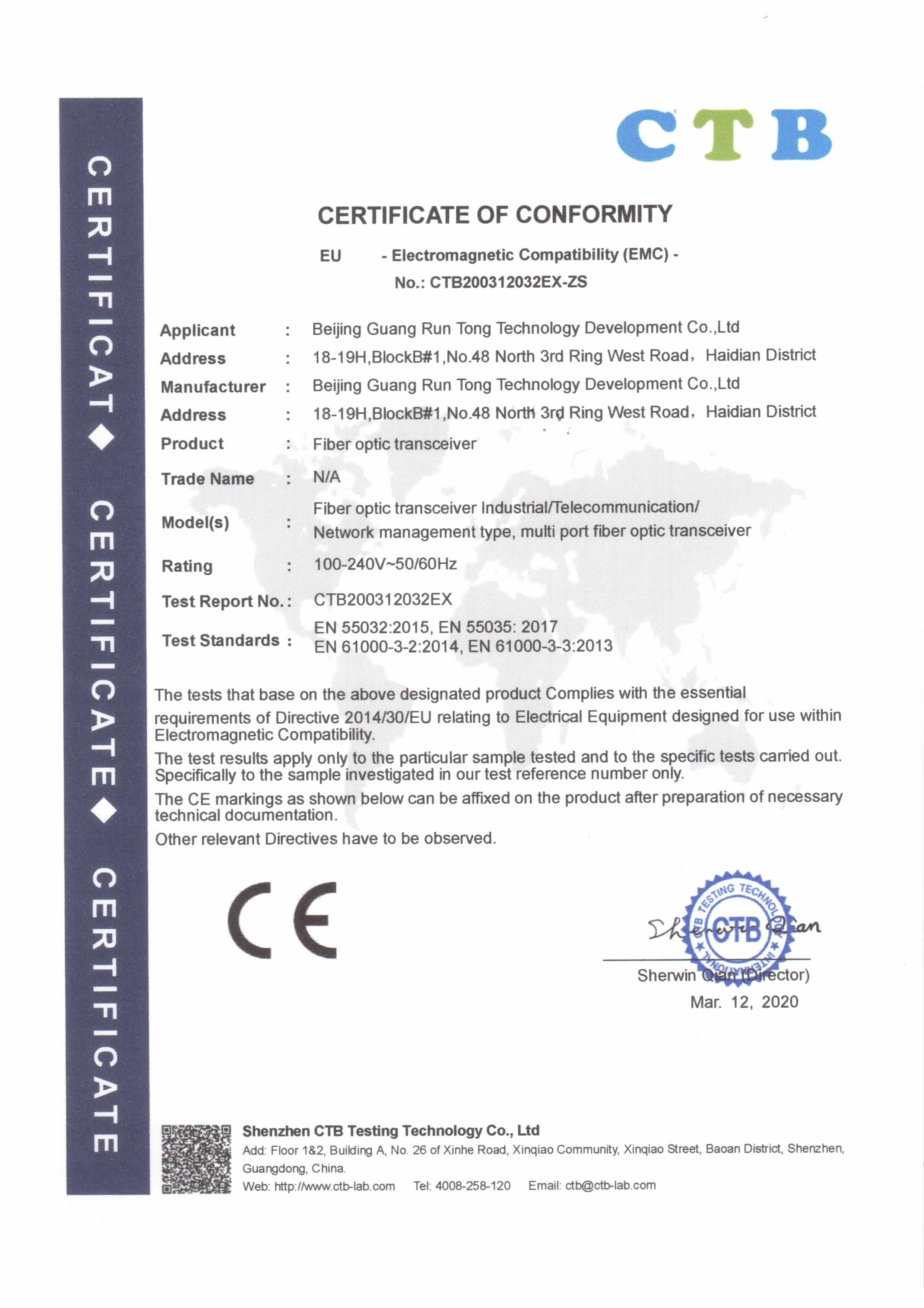 光潤通已通過CE認證。 CE標志是歐盟法律對產品提出的一種強制性要求,表明產品符合歐盟《技術協調與標準化新方法》指令的基本要求。 光潤通確保產品滿足指令要求,符合基本的健康和安全理念。